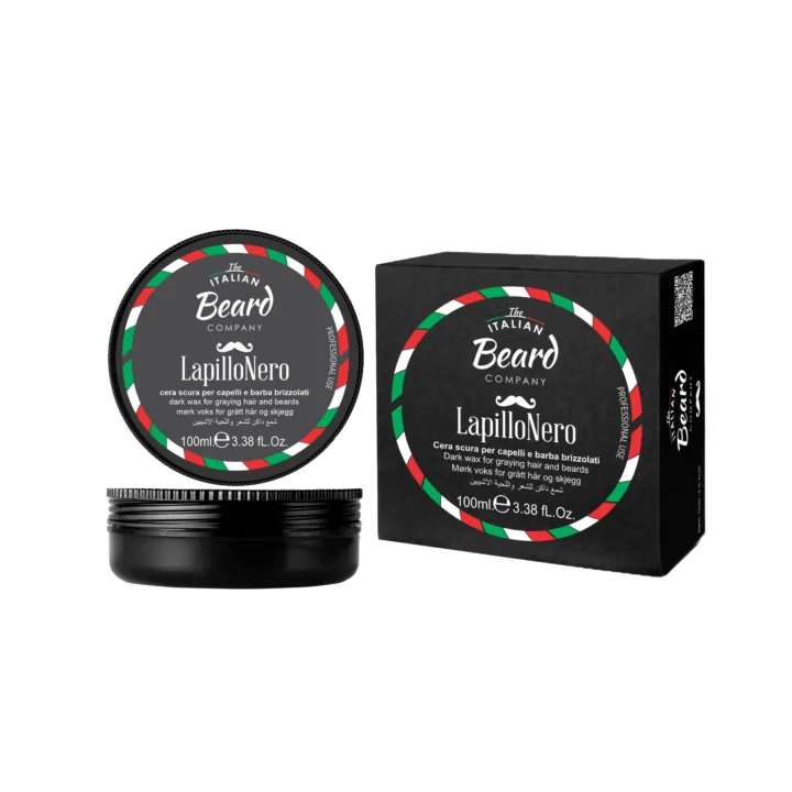 Lapillo Nero è una cera scura studiata per uniformare il colore di capelli e barba brizzolati, consentendo di personalizzare lo stile con un effetto naturale.