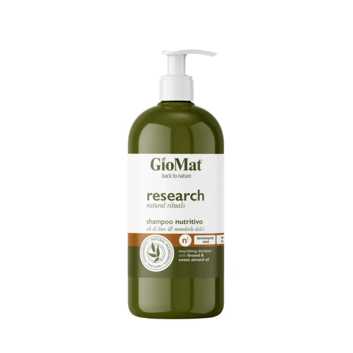 Shampoo nutritivo per capelli secchi, sfibrati e opachi, ideale per restituire morbidezza, lucentezza e forza alla fibra.